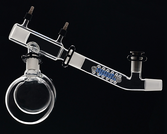Summit is constantly reinventing distribution adapters and producing what the customer needs. We have many generations of adapters to choose from that provide their own unique efficiency. Patented and first of its kind, Summit released the original ball monocow with a kick-out GL14 port. The second came in form of the new series angular tube monocow with GL14 on top. The third generation being an angular build out like the second but with extended removal and prevention of contamination from re-entering the collection flask. The forth series is a solid tube connection monocow, with coil added for increased pathway separation and matrix chilling for higher speeds and deeper vacuum. 2020 releases have included coil-less adapters for a shorter, more compact unit which makes for more hot vapor bypass. A true laminar with less turbulence.